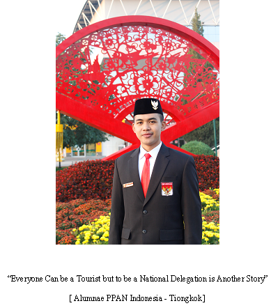 Menjadi perwakilan Provinsi Jambi merupakan suatu kebanggaan yang tidak terkira dan pernah terbayangkan dalam hidup saya. Bertemu dengan 33 Duta Muda Indonesia dari seluruh tanah air dan dipersatukan dalam kontingen Indonesia merupakan suatu pencapaian yang sangat berharga dalam hidup saya pada tahun 2016. Membawa nama Indonesia tidak hanya menjadi beban tapi menjadi rasa tanggung jawab yang besar atas nama tugas negara yang harus kami laksanakan demi menjaga nama baik Indonesia. Kesempatan menjadi Duta Muda Indonesia utusan Provinsi Jambi bukanlah sesuatu yang mudah untuk saya wujudkan Maret 2016 merupakan saksi saat saya harus berjuang bersama 80 peserta lain merebutkan satu posisi untuk mewakili Provinsi Jambi hingga keberuntungan berpihak kepada saya untuk menjadi utusan Provinsi Jambi pada PPAN tahun 2016.