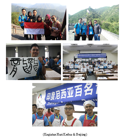 Pada hari kedua di Beijing berkunjung ke Great Wall Juyongguan selanjutnya ke China Youth Center for International Exchange mempelajari kebudayaan Tiongkok seperti membuat kaligrafi bahasa Mandarin, belajar melukis secara tradisional dan membuat makanan khas Tiongkok yaitu Dumping. Kegiatan ini merupakan penutup rangkaian kegiatan di Beijing, Good Bye !